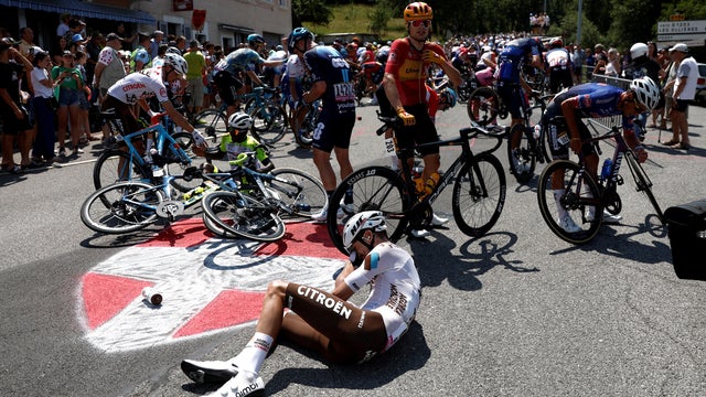 source: https://www.cbsnews.com/news/tour-de-france-crash-reports-fan-taking-selfie-pleas-for-caution/