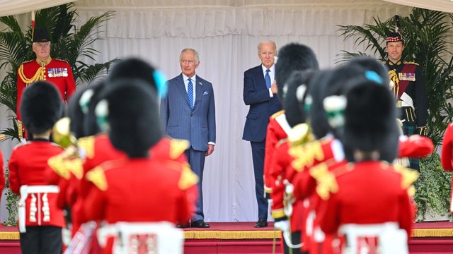 After his meeting with Sunak, Mr. Biden left central London to head west for his first in-person meeting with King Charles III at Windsor Castle. Though not an official state visit, some classic British pomp and circumstance was organized for Mr. Biden's stop at the ancient home of the British monarchy, including a military Guard of Honor and a marching band.