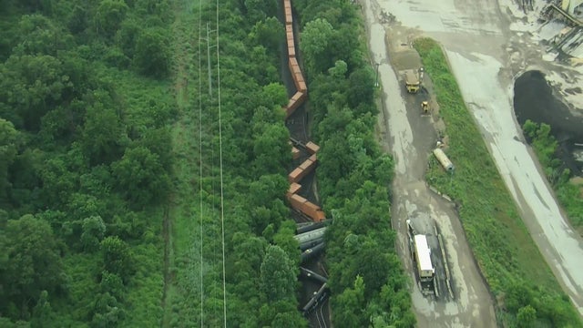 Officials said that just before 5 a.m., part of a 40-car freight train derailed. At least 10 of the cars are said to be off the tracks.